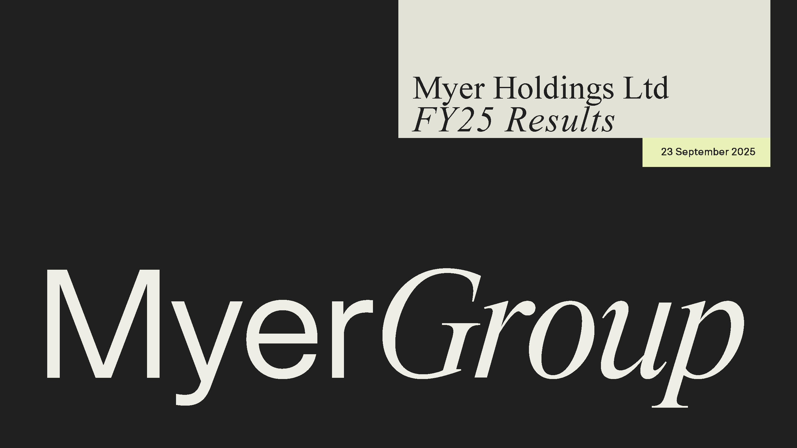 Myer Group announced its Full Year Results on Tuesday 23 September 2025. The results presentation and the recording of the analyst and investor call is available here: